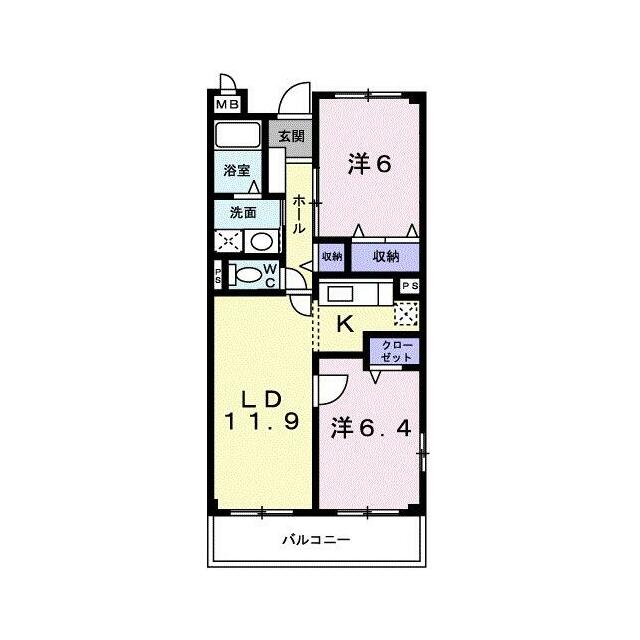 2LDK(洋6.4・洋6・LDK11.9) |