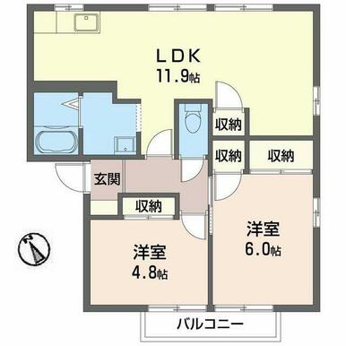 2LDK(LDK11.9帖 洋室6.0帖 洋室4.8帖) |