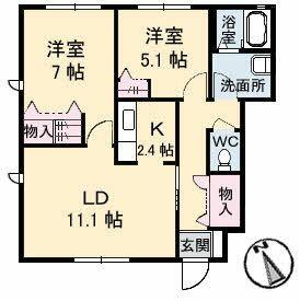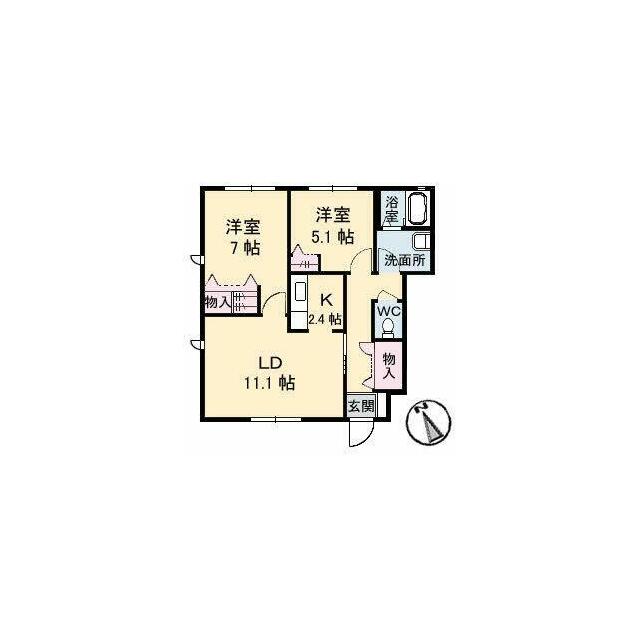 2LDK(LDK11.1帖 洋室7.0帖 洋室5.1帖) |